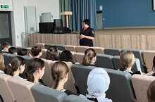 7нче сыйныф укучылары белән полиция майоры Мәннәпова Гүзәл Муллануровна "Хокук бозулар һәм җинаятьләрне профилактикалау" дигән темага сөйләшү уздырды. Әңгәмә барышында укучылар полиция һөнәре белән якынрак таныштылар, үзләренең хокукларын һәм бурычларын искә төшереп үттеләр. Инспектор "Татарстан Республикасында балаларның сәламәтлегенә, аларның физик, интеллектуаль, психик, рухи һәм әхлакый үсешенә зыян китерүне кисәтү чаралары" турындагы законга аерым тукталып китте.