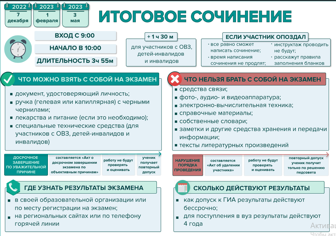 - информация о сроках проведения итогового сочинения (изложения), экзаменов