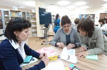 Во второй практической части библиотекари разделились на две группы. Одна группа закомилась с основами создания и проектирования сайтов. Данной группой руководила Чепегина Г.З. – заведующая библиотекой МАОУ “Лицей №121” Советского района. Вторая группа под руководством заведующей библиотеки МБОУ “Лицей №35 – образовательный центр “Галактика” Приволжского района Минеевой Э.А. создавали свои модели школьных библиотек.