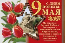 Уважаемые коллеги! Дорогие ветераны!От всего сердца поздравляем вас со священным праздником Днем Великой Победы! Этот празник стал олицетворением чести и доблести, стойкости и беспримерного мужества, проявленных нашим народом в боях за Родину.С праздником вас, кто прошел войну, кто знает о ней не понаслышке. Низкий вам поклон. С праздником, кто родился в мирное время и чей долг- сохранить мир, доставшийся столь дорогой ценой! От всего сердца желаем вам доброго здоровья, счастья, благополучия и праздничного настроения. Мира и добра Вам и Вашим близким! -