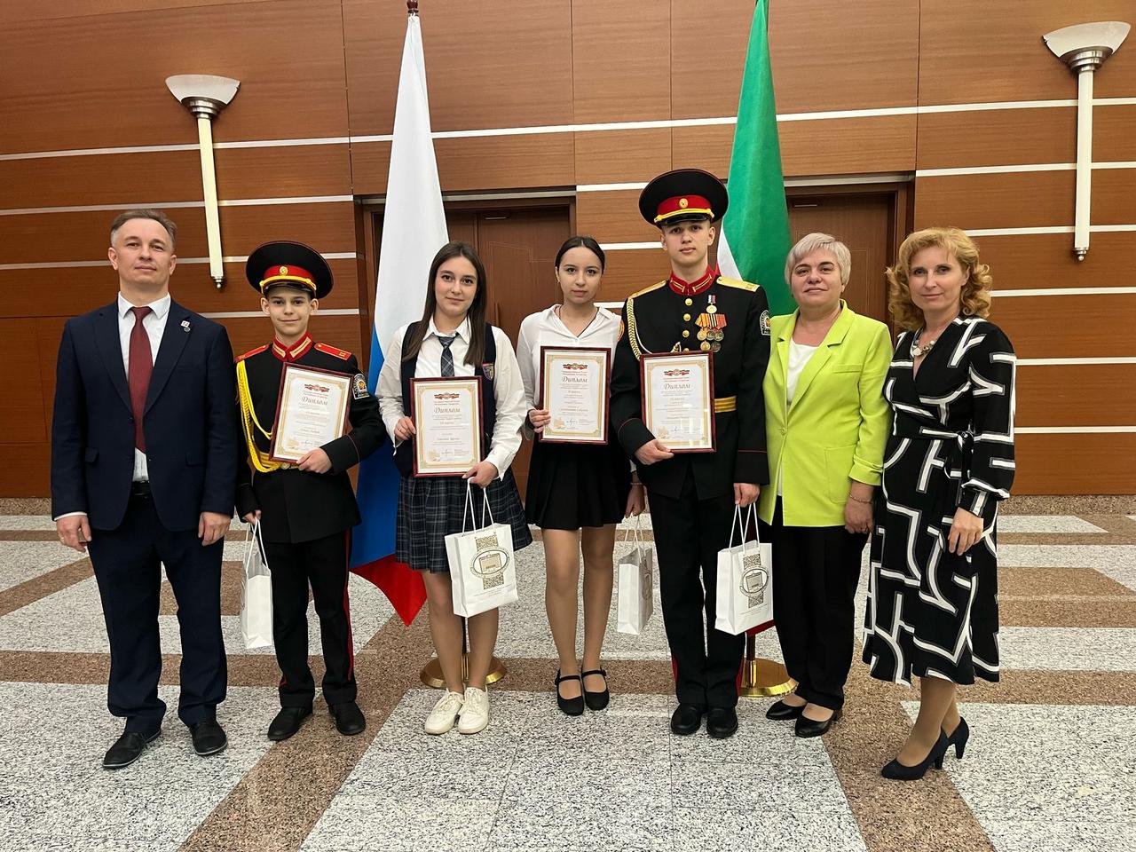 Опубликовано: 23.04.202522 апреля 2025 года в Государственном Совете состоялась торжественная церемония награждения победителей и призеров республиканских конкурсов в рамках Парламентского урока-2025. Мы поздравляем Деникаева Дамира, Ляпина Андрея, учеников ГБОУ «Казанская кадетская школа- интернат им. Героя Советского Союза Б.К.Кузнецова (учитель Михайлова Е.В); Сулейманову Сабрину, ученицу МБОУ «Татарская гимназия №1 им.Г.Тукая» (учитель Зергирова Л.Н); Хамзину Зарину, ученицу МБОУ «Многопрофильный лицей №186-«Перспектива»( учитель Гильмутдинов Р.А). Желаем им успехов и новых достижений!