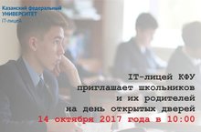 14 октября 2017 года в 10:00 в IT-лицее Казанского федерального университета пройдет мероприятие «День открытых дверей», где все желающие смогут познакомиться с лицеем, его педагогами и перспективами, которые открываются здесь для учащихся – гости мероприятия получат возможность в буквальном смысле "прикоснуться к IT-технологиям".