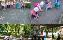 Мы постарались в этот день создать праздничную атмосферу и порадовать детей весёлыми играми, песнями и плясками, рисованием на асфальте, весёлым пусканием мыльных пузырей и конечно же веселыми эстафетами-:)