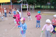 Дошколята продолжили веселье с мыльными пузырями на игровых площадках.