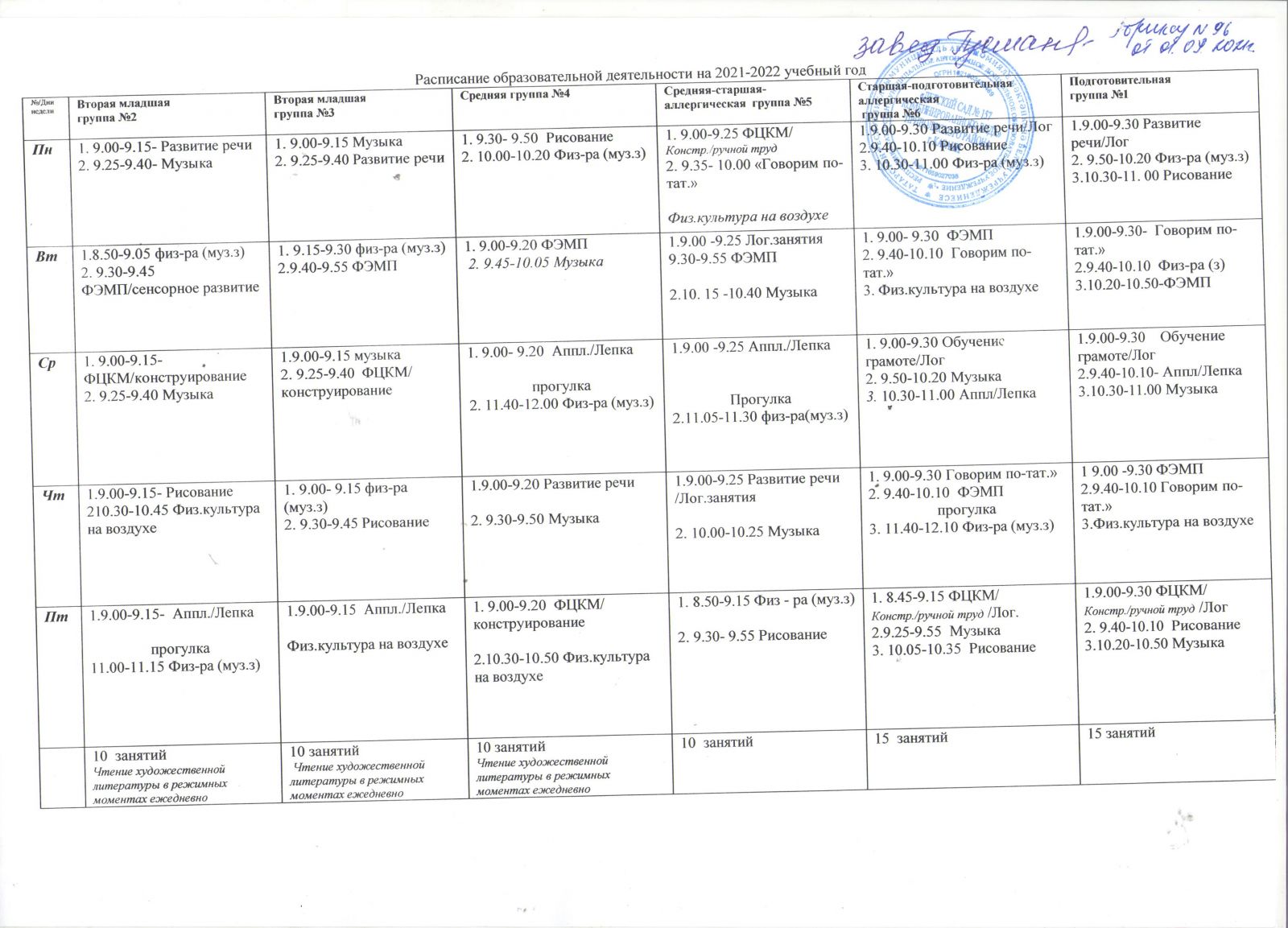 Распиание занятий на 2021-2022 уч.гг.