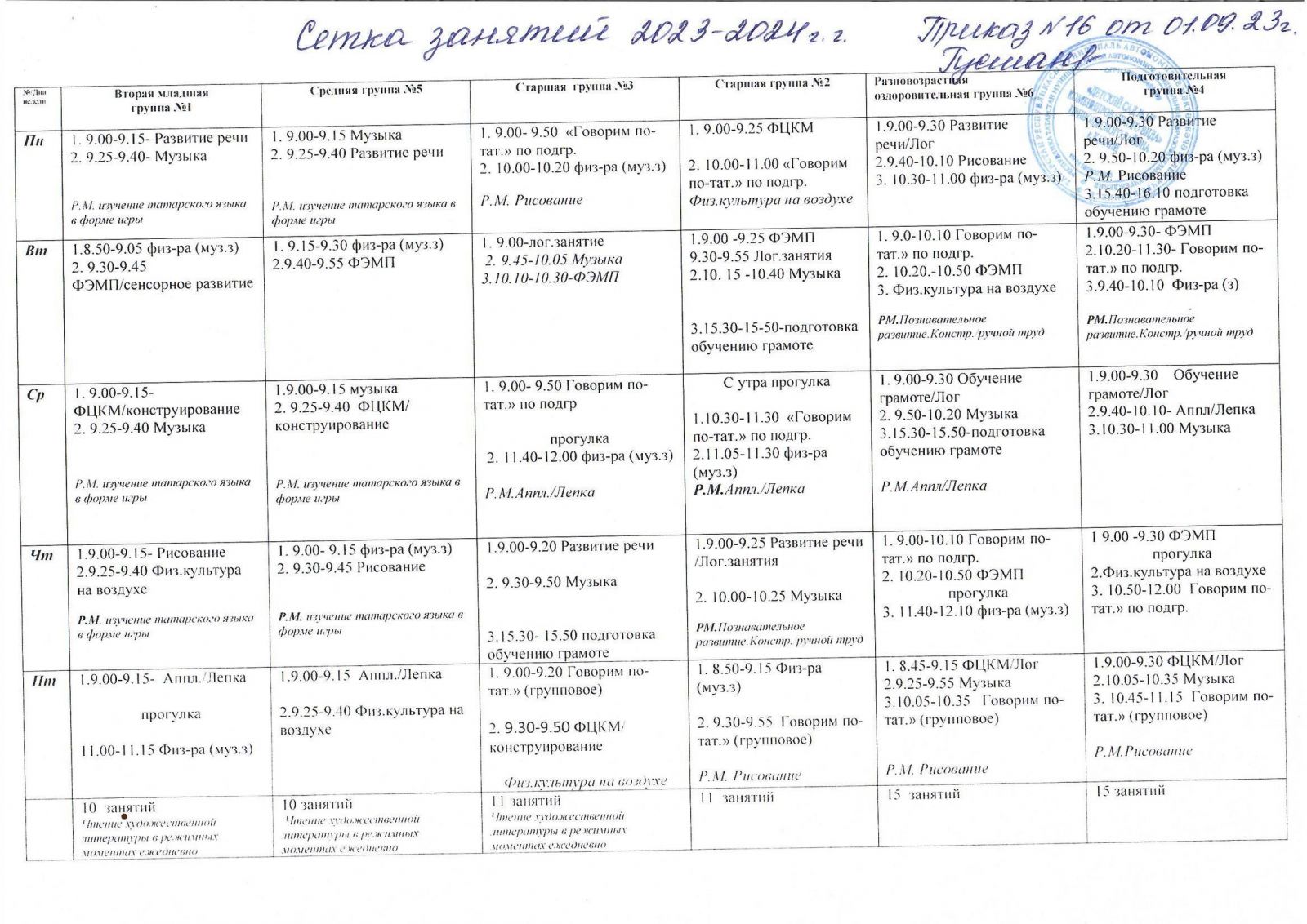 Распиание занятий на 2023-2024 уч.гг.