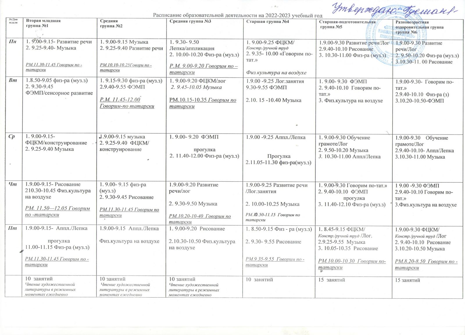 Распиание занятий на 2022-2023 уч.гг.