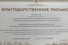 Лицей отмечен Благодарственным письмом за организацию пункта проведения муниципального этапа всероссйской и республиканской олимпиад школьников от Управления образования г. Казани.