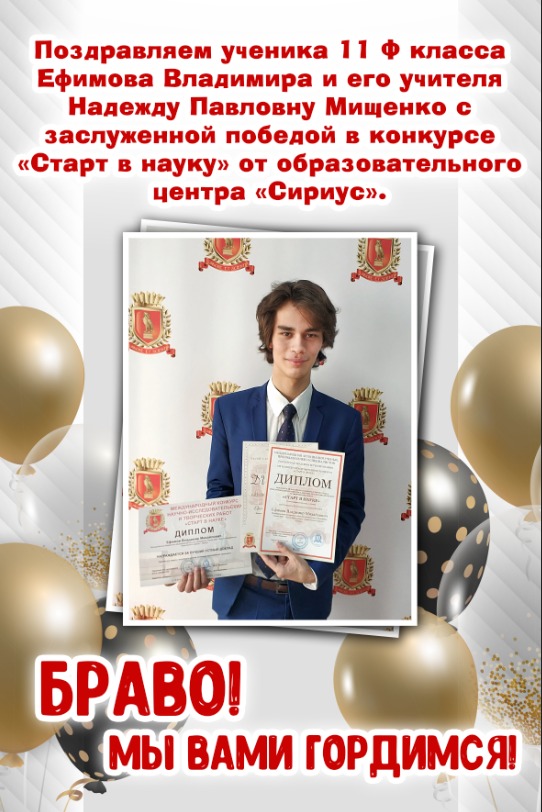 Поздравляем Аризанович К., ученицу 11 класса, Джапасбатову Э., ученицу 11 класса, педагогов Л.Э. Зайдуллову и Ю.С. Торбанову, с победой (диплом 1 и 3 степени) на 5 Всероссийской научно-практической конференции имени Л. Толстого за исследовательскую работу. Поздравляем Ефимова В., ученика 11 класса, педагога Л.Р. Мухаметзянову, с победой (диплом 2 степени) на 5 Всероссийской научно-практической конференции имени Л. Толстого за исследовательскую работу. Молодцы!