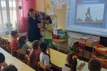 Воспитатели по обучению татарского языка Алсу Фанилевна и Лейсан Ахметовна рассказали детям о жизни и творчестве поэта-героя, дети с удовольствием читали его стихи на русском и на татарском языках "Случай в подъезде", "След", "Красная ромашка", "Этэч", "Сэгать" и другие.