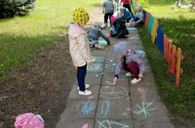 1 июня в детском саду состоялось празднование международного дня защиты детей. Погода в этот день была далеко не праздничной, но это не помешало проведению праздника, который состоялся в музыкальном зале. С воспитанниками проводили различные игры, соревнования. Праздник оставил много положительных эмоций, которые дети с удовольствием отразили на асфальте.