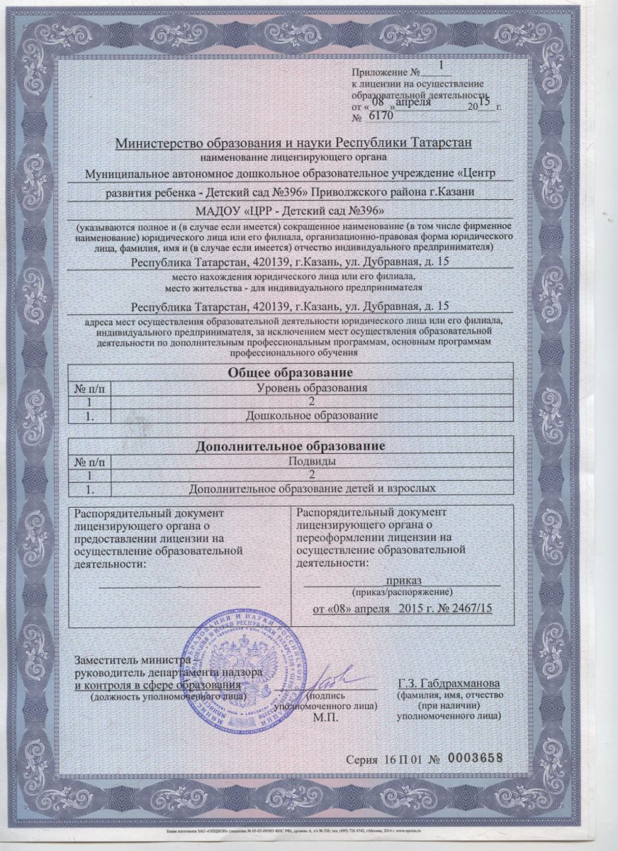 Короткое название: МАДОУ "ЦРР - Детский сад № 396" Приволжского района г. Казани