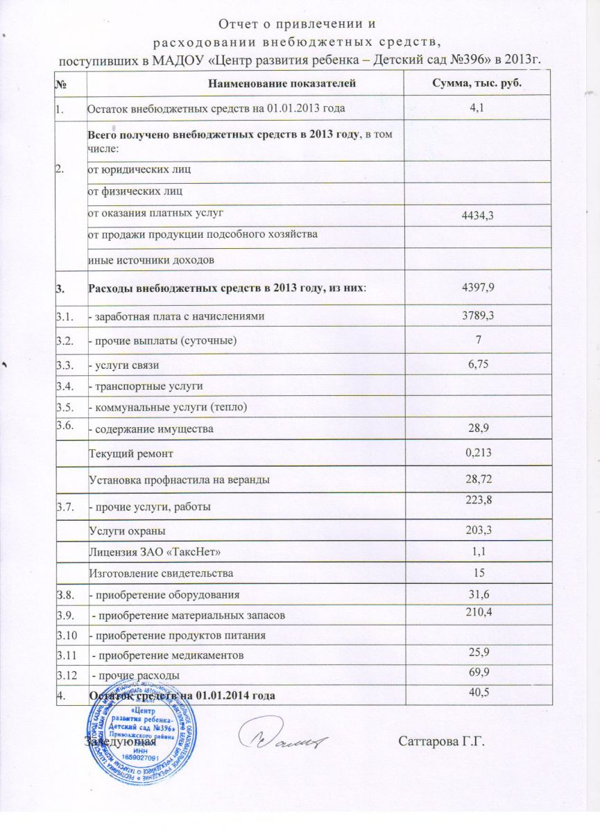 Отчет о привлечении и расхоовании внебюджетных средств за 2013 год.
