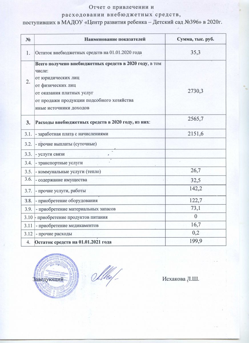 Отчет о привлечении и расходовании внебюджетных средств за 2020 год.