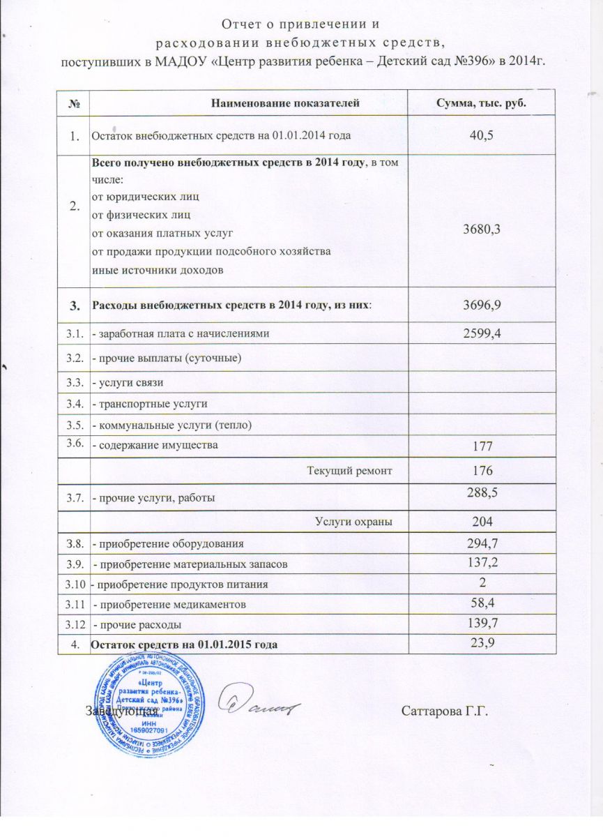 Отчет о привлечении и расходовании внебюджетных средств за 2014 год.