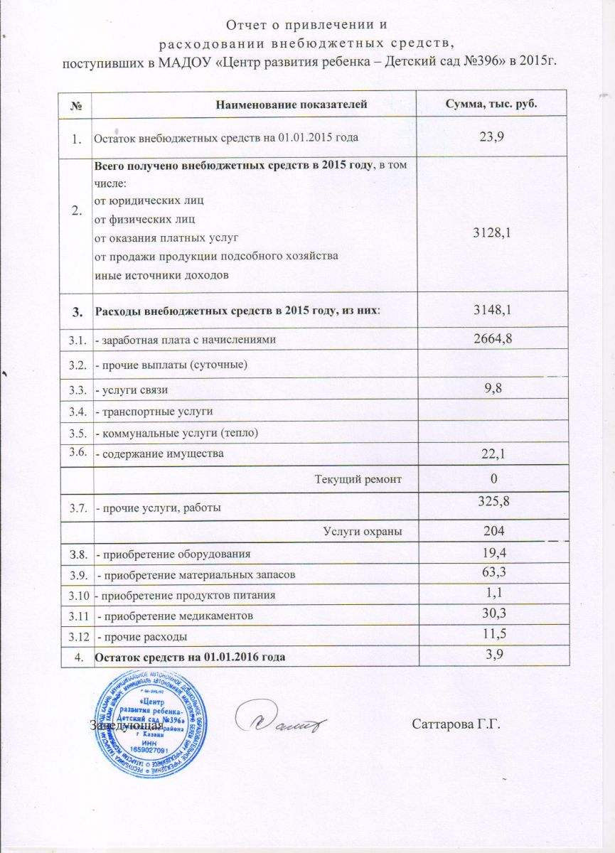 Отчет о привлечении и расходовании внебюджетных средств за 2015 год.