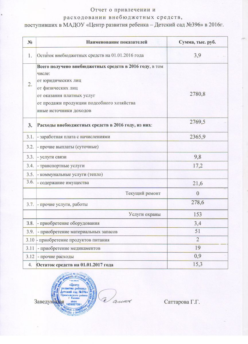 Отчет о привлечении и расходовании внебюджетных средств за 2016 год.