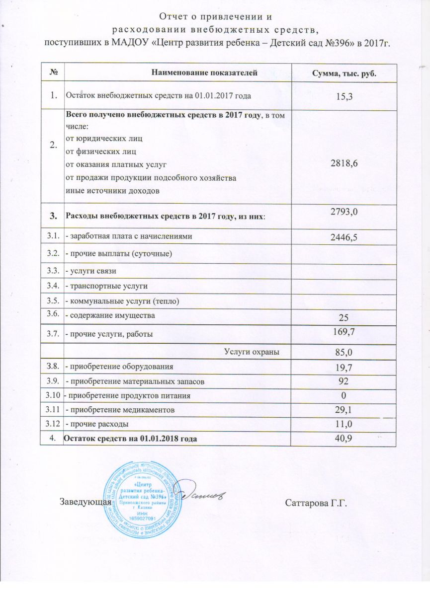 Отчет о привлечении и расходовании внебюджетных средств за 2017 год.
