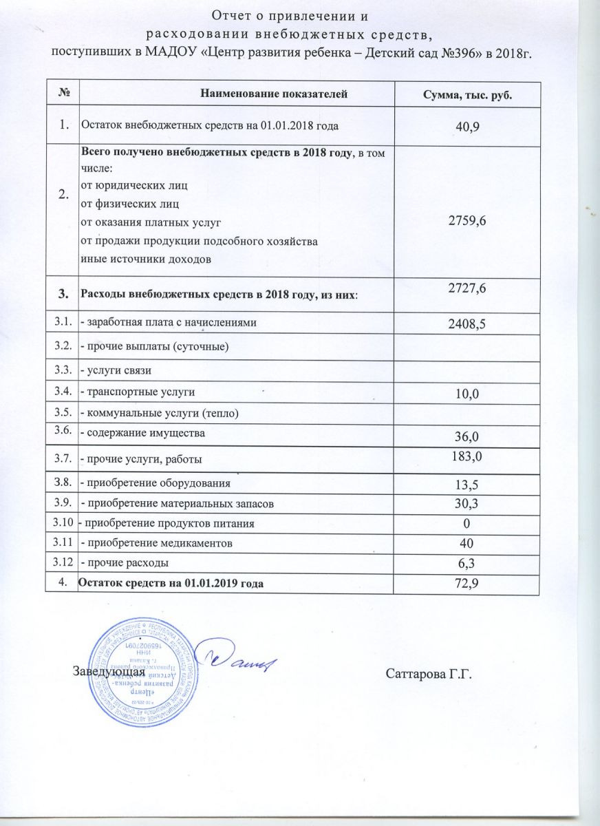 Отчет о привлечении и расходовании внебюдженых средст за 2018 год.