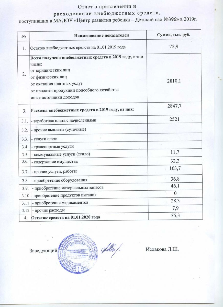 Отчет о привлечении и расходовании внебюджетных средств за 2019 год.