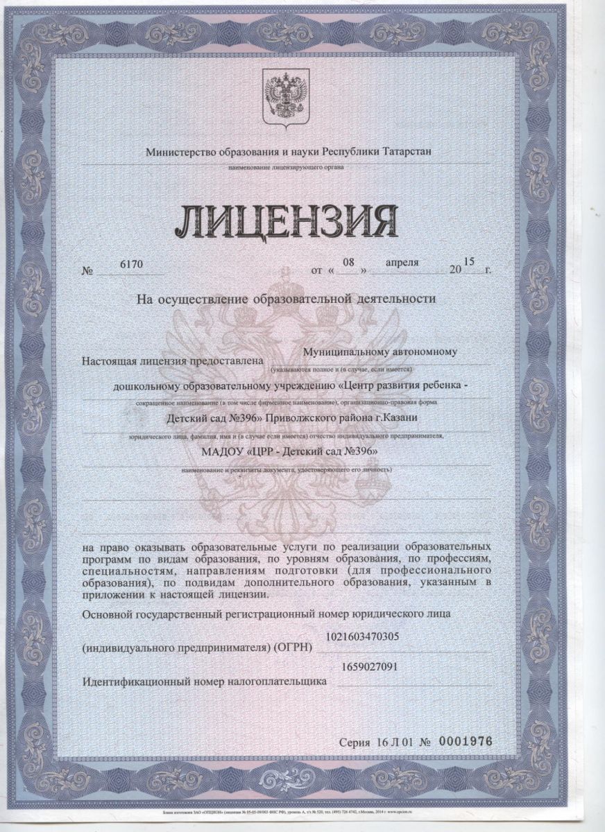 | Короткое название: | МАДОУ "ЦРР - Детский сад № 396" Приволжского района г. Казани |