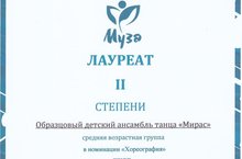 25 февраля 2017 года в Доме Актера им. Салимжанова состоялся Международный фестиваль-конкурс детского и юношеского творчества "Муза - 2017" при поддержке Министерства культуры РТ, в котором принял участие Образцовый детский ансамбль танца "Мирас" - средняя возрастная группа - ЛАУРЕАТ II СТЕПЕНИ, младшая возрастная группа - ЛАУРЕАТ IV СТЕПЕНИ (руков Д.И.Умеров, Л.Р.Маннапов, конц И.Ш.Ганиев)