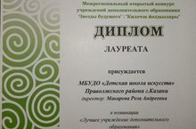 "Детская школа искусств" Приволжского района г. Казани стала ЛАУРЕАТОМ конкурса в номинации "Лучшее учреждение дополнительного образования".