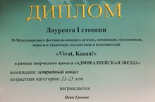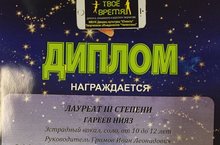 а так же преподаватель ДШИ - Иван Леонидович Громов стал ЛАУРЕАТОМ I СТЕПЕНИ в номинации "Эстрадный вокал" (23-25 лет).