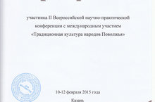 15-17 февраля в КИКиИ прошла II Всероссийская научно- практическая конференция с международным участием "Традиционная культура народов Поволжья", в рамках которой принял участие преподаватель хореографии ДШИ- Д.И. Умеров с докладом по теме: "Танцевальный фольклор татар- кряшен Кайбицкого района Республики Татарстан"