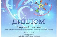 На XXXI Международном фестивале- конкурсе детских, юношеских, молодежных, взрослых творческих коллективов и исполнителей "Виват, Казань!" в рамках проекта "АДМИРАЛТЕЙСКАЯ ЗВЕЗДА" в номинации: Инструментальная музыка" учащиеся преподавателя Марины Владимировны Абитовой стали Лауреатами!