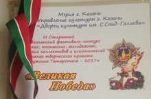 III Открытый Республиканский фестиваль-конкурс детских, юношеских, молодежных, творческих коллективов и исполнителей "ВЕЛИКАЯ ПОБЕДА" в рамках творческого проекта "Жемчужина Татарстана - 2017" 13.04.2017