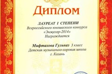 22 марта 2014 года в Казанском государственном университете культуры и искусств состоялся Всероссийский юношеский конкурс "Энжеләр 2014". Учащаяся ДМХШ Мифтахова Гульназ (класс преподавателя Гайнутдиновой Г.Х.) стала обладателем диплома Лауреата I степени. ПОЗДРАВЛЯЕМ!!! 22.03.2014