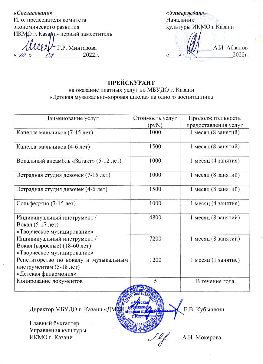 Прейскурант цен на платные образовательные услуги ДМХШ