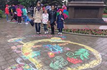 Учащиеся художественного отделения Самарина Дарья, Аманова Лейла и Мустафина Райхан нарисовали прекрасный рисунок на асфальте под руководством Родионовой М.В.