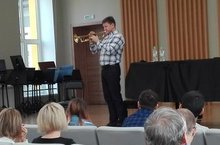 21 октября в 11 .00 в актовом зале ДМШ №5 состоялся мастер-класс Дениса Попова, солиста Московского государственного оркестра И. Бутмана для преподавателей духовых отделов города и Республики. Публика встретилась с личностью незаурядной, яркой, имеющий свой взгляд на эстетику звука на трубе, особенности подготовки трубачей в учебном заведении. Ученик выдающегося московского педагога Е.А.Савина очень увлеченно , профессионально и интересно рассказал о своих метаниях, заблуждениях и ошибках, о методических наработках и о своем видении развития и обучения молодых музыкантов духовиков. Встреча была полезной и запоминающейся.