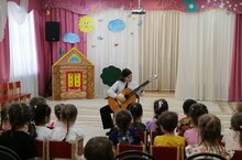 Юные музыканты познакомили малышей со струнно-щипковыми инструментами: балалайкой, домрой, гитарой, а также с баяном.