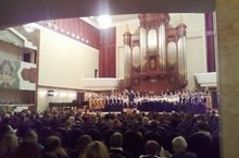 В завершение вечера все три хора объединились (а это около 200 музыкантов!), чтобы совместно с органом исполнить «Sanctus», часть из Мессы си минор Иоганна Себастьяна Баха. -