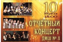 Прошел Отчетный концерт Детской музыкальной школы №8. Взволнованные лица преподавателей, как никогда ответственные дети, счастливые лица родителей, множество гостей! Особая торжественная, праздничная атмосфера! На сцене - оркестры, хоры, ансамбли, солисты. Всё это было гармонично и проникновенно. Все выступления были отмечены продолжительными аплодисментами слушателей. Очень важны такие выступления, они приносят не только радость, праздничное настроение, они объединяют и сплачивают ребят, которые занимаются прекрасным делом, учатся любить музыку, исполнять ее и слушать! И уже сейчас, сразу после концерта, у всех новые планы и желание трудится дальше, радовать и удивлять. Пожелаем же всем огромных творческих успехов!
