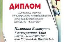 VII Открытый Республиканский конкурс фортепианных ансамблей "Созвучие" Полянина Катя,Калимуллина Алия ДИПЛОМ Лауреата II степени