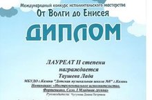 Международный конкурс исполнительского мастерства От Волги до Енисея Полянина Катя,Калимуллина Алия ДИПЛОМ Лауреата I степени, Таушева Лада ДИПЛОМ Лауреата II степени