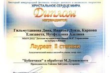 Международный фестиваль-конкурс детского и юношеского творчества "Хрустальное сердце мира" Трио девочек ДМШ №8 ДИПЛОМ Лауреата I степени.