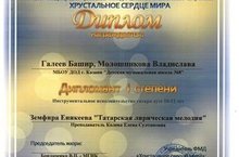 Галеев Башир и Молошникова Владислава стали ДИПЛОМАНТАМИ I степени в номинации "инструментальное исполнительство гитара-дуэт 10-12 лет" на ежегодном международном фестивале-конкурсе детского и юношеского творчества "Хрустальное сердце мира"