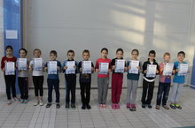 16 февраля 2017г. Дворец Водных видов спорта. Группа спортсменов 2007г.рождения, тренер-преподаватель Солдаткина Т.А. на мероприятии по случаю приезда мэра г.Парижа. -