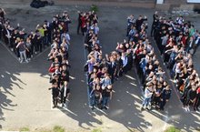 Сегодня в рамках Осенней недели добра студенты техникума приняли участие в массовом флешмобе "Мы за добро и мирное небо"