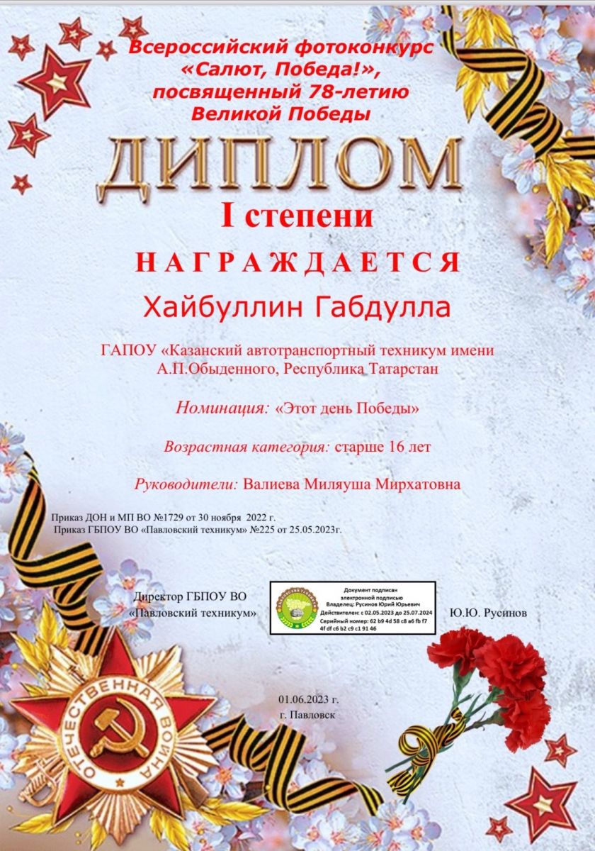 Поздравляем Хайбуллина Габдуллу и Валиеву Миляушу Мирхатовну с победой!