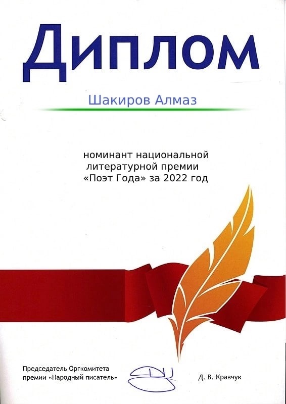 Шакиров Алмаз, студент группы ОП 219-2 стал номинантом национальной литературной премии