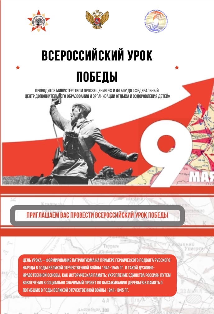 Сегодня во время классных часов был проведён Всероссийский урок Победы, организованный министерством просвещения РФ и ФГБОУ ДО «Федеральный центр дополнительного образования и организации отдыха и оздоровления детей»