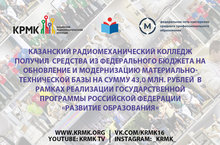 Казанский радиомеханический колледж получил средства из федерального бюджета на обновление и модернизацию материально-технической базы на сумму 43,0 млн. рублей в рамках реализации государственной программы Российской Федерации «Развитие образования»