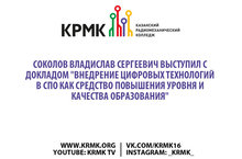 27 ноября преподаватель Соколов Владислав Сергеевич выступил с докладом «Внедрение цифровых технологий в СПО как средство повышения уровня и качества образования» в республиканской научно-практической конференции «Современные тенденции развития профессионального образования: от ФГОС СПО к международным стандартам подготовки кадров»