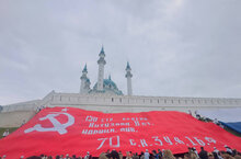 Студенты, активисты и волонтеры-медики Казанского медицинского колледжа стали частью торжественного Парада Победы, с гордостью развернув священное Знамя Победы, символ героизма и стойкости в Великой Отечественной войне.